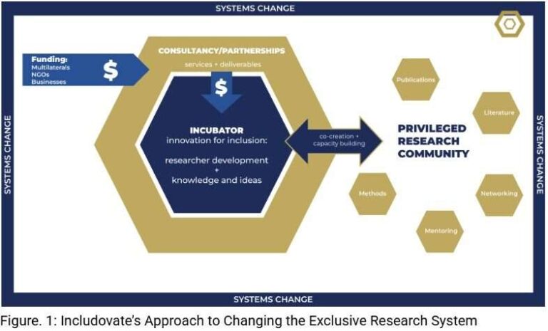 Includovate is a systems change research incubator. Like a business incubator that grows businesses, we develop research talent across low- and middle-income countries. Includovate’s methodology challenges traditional research assumptions by adopting feminist, inclusive, and participatory approaches that critically interrogate implicit biases and systemic inequities. Here are the key ways it does so: